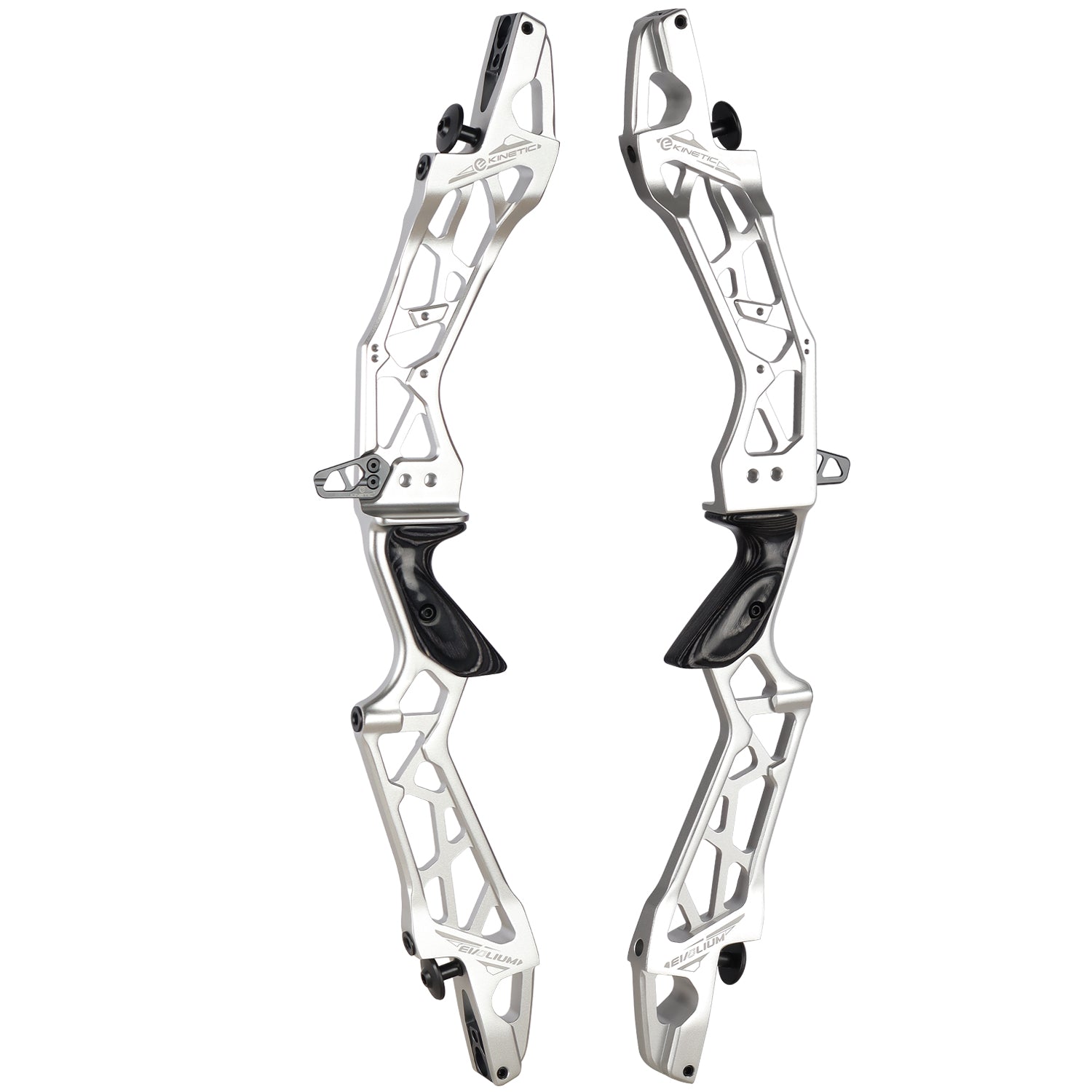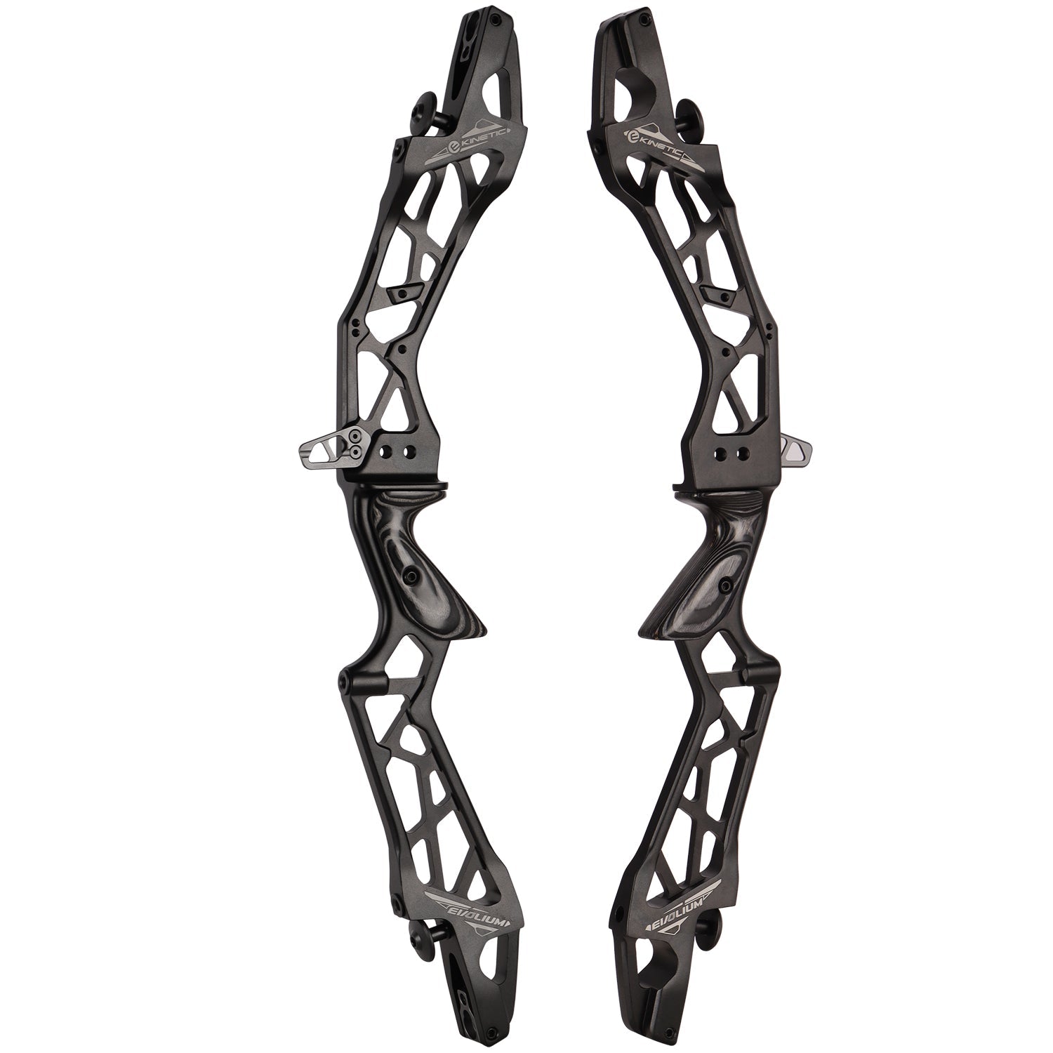 The Kinetic Evolium is a CNC-machined 25" ILF riser made from 6063-T6 extruded aluminium, designed with a wider profile to enhance stiffness and accommodate higher draw weights. Combining practical features like a secure clicker extension, zero-tolerance limb alignment system, and classic wooden grip, the Evolium offers excellent value without compromising on performance or feel.