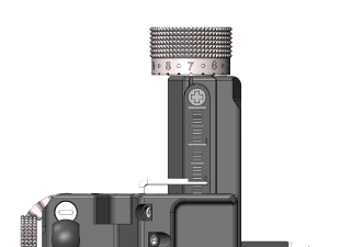 Re-adjustable, zero-tolerance fit between the windage unit and sight frame. Super-slick and durable polyacetal resin guide spacers enclose the elevation rail, re-adjustable at the turn of a set screw. All parts field-adjustable and -replaceable!