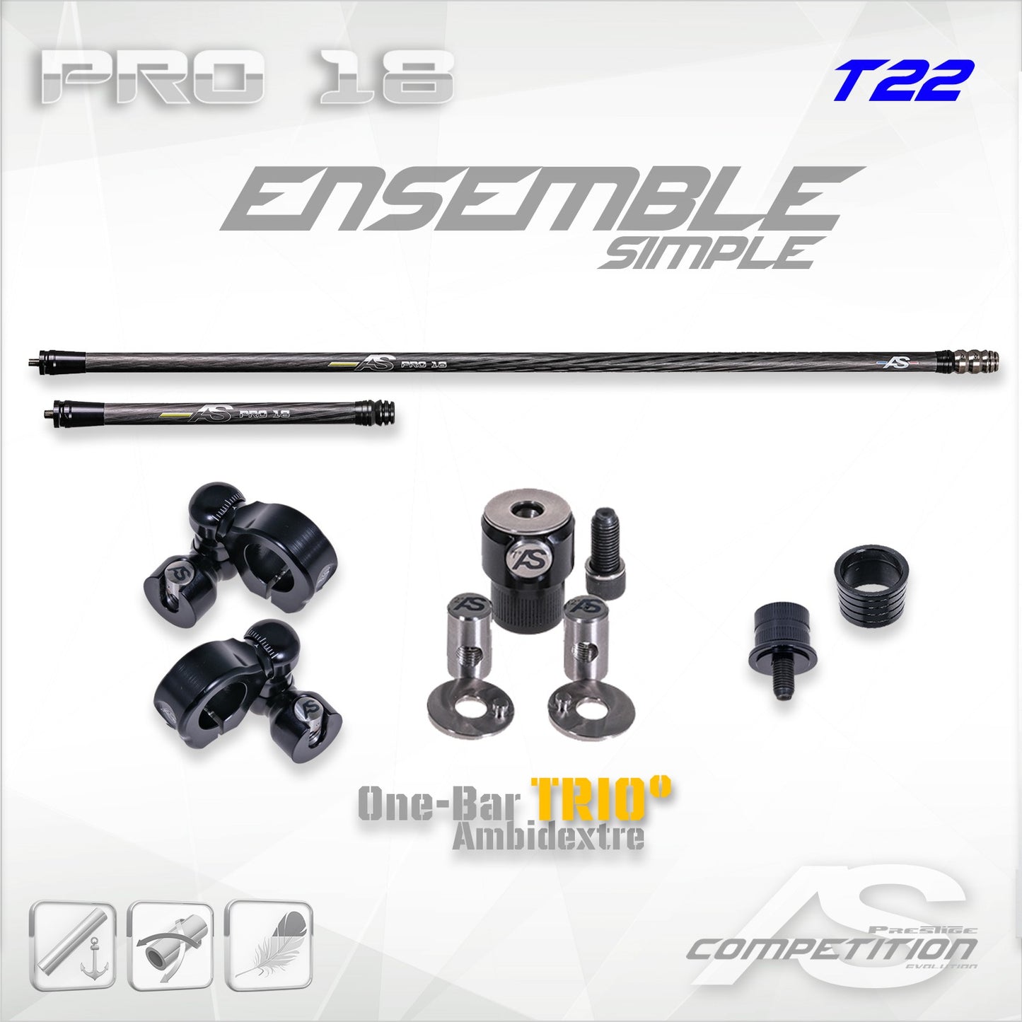 Stabilizers kit 18mm with VBAR TRIO degrees (do not mount on carbon directly). Weights fixing tulip included (T18/22 or T18/35). T22 comes with 2 intermediate weights and 1 finishing weight (22mm and 30g each). T35 tulip alone. Dimensions (central/side) - SMALL 70/25cm (27.5/10in). MEDIUM 75/30cm (29.5/12in). LARGE 80/35cm (31.5/14in). Tightening wrench supplied.