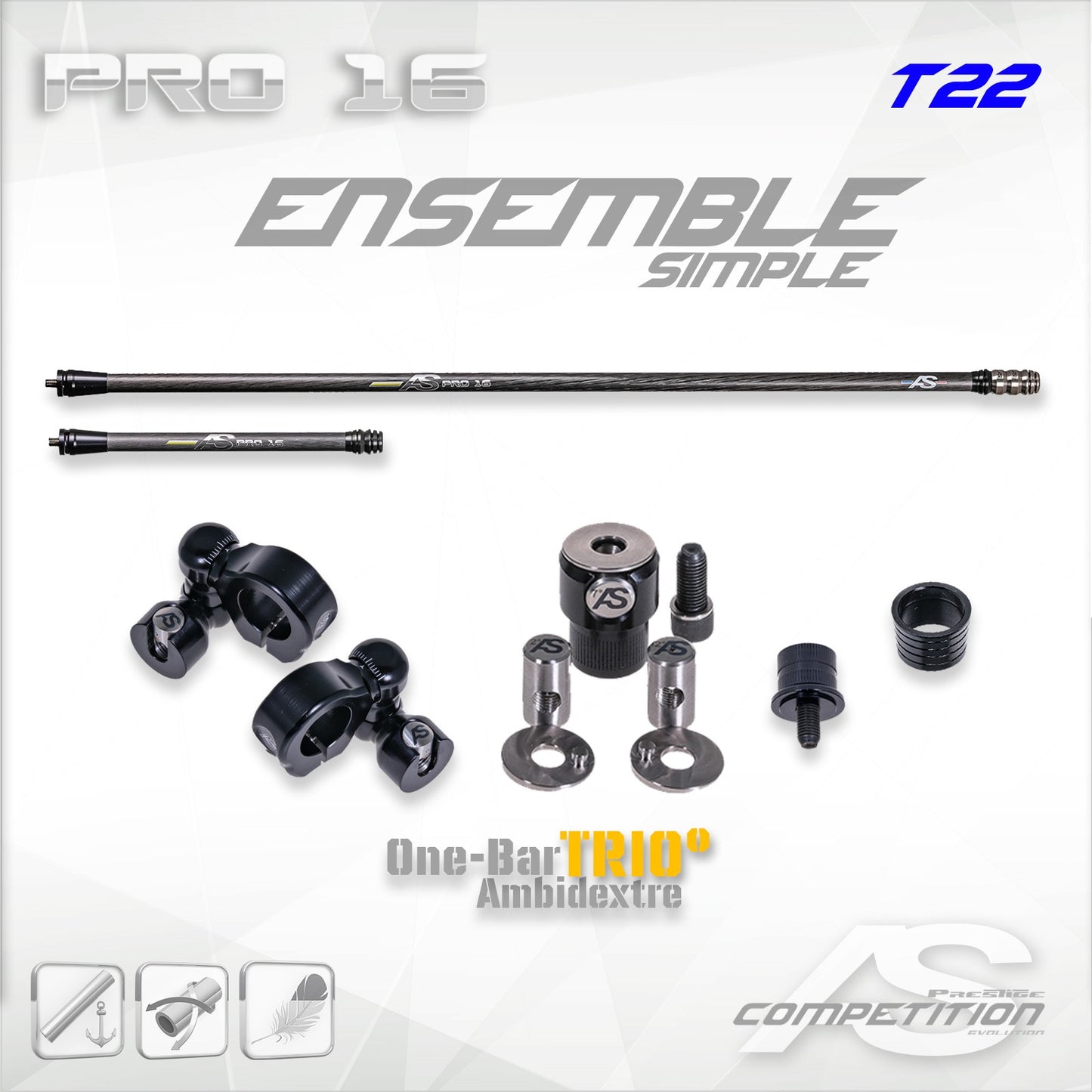Stabilizers kit 16mm with VBAR TRIO degrees (do not mount on carbon directly). Weights fixing tulip included (T16/22 or T16/35). T22 comes with 2 intermediate weights and 1 finishing weight (22mm and 30g each). T35 tulip alone. Dimensions (central/side) - SMALL 70/25cm (27.5/10in). MEDIUM 75/30cm (29.5/12in). LARGE 80/35cm (31.5/14in). Tightening wrench supplied.
