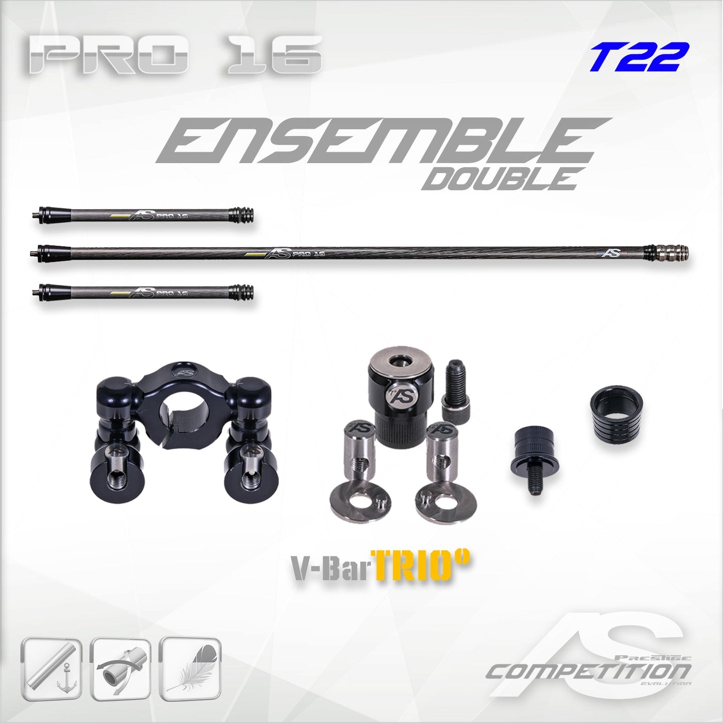 Stabilizers kit 16mm with VBAR TRIO degrees (do not mount on carbon directly). Weights fixing tulip included (T16/22 or T16/35). T22 comes with 2 intermediate weights and 1 finishing weight (22mm and 30g each). T35 tulip alone. Dimensions (central/side) - SMALL 70/25cm (27.5/10in). MEDIUM 75/30cm (29.5/12in). LARGE 80/35cm (31.5/14in). Tightening wrench supplied.