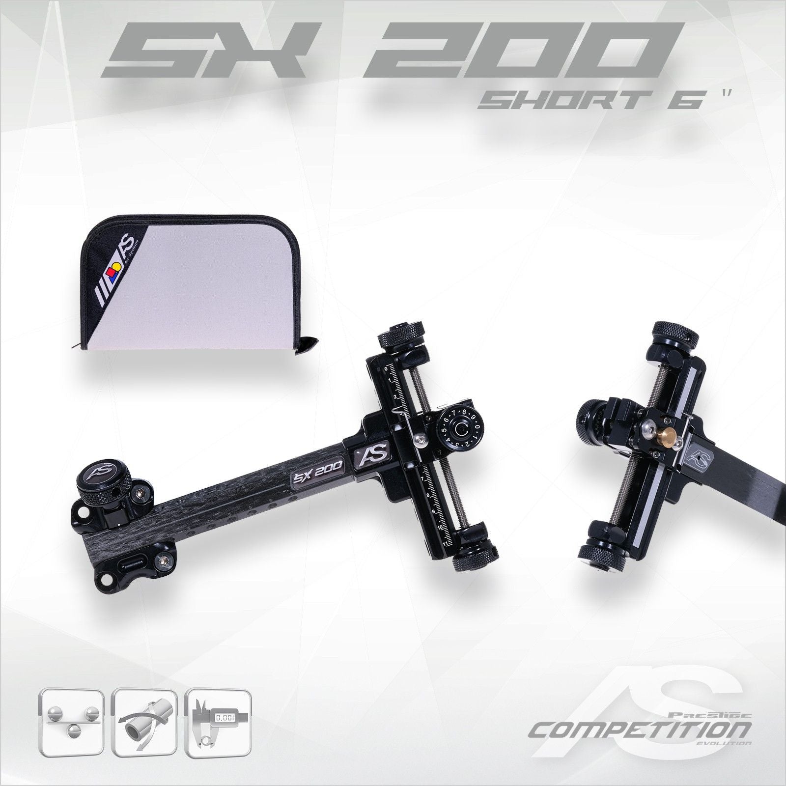 The top of the range compound sight from Arc Systeme is also available with a shorter extension arm and a more compact frame. The SX200 SHORT features a 6 inch carbon extension arm. This model does not include the scope mounting unit. Please purchase a SX3D or SX2D separately. This model can also be used as a recurve sight by adding an Arc Systeme SX1D.