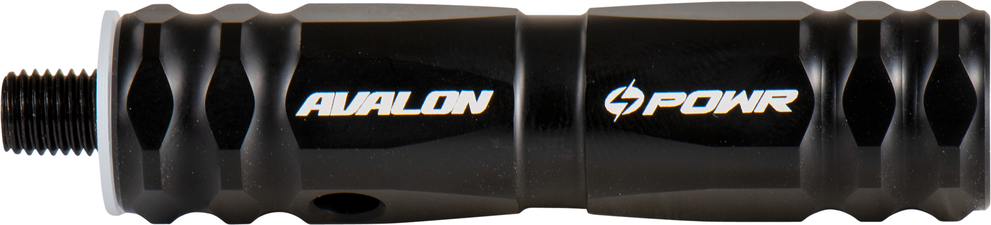 Completing the Avalon POWR stabilizer range. The POWR Extender features a distictive aluminium body design and is available in 2in, 3in and 4in lengths. 5/16in male and female threads. Black colour....